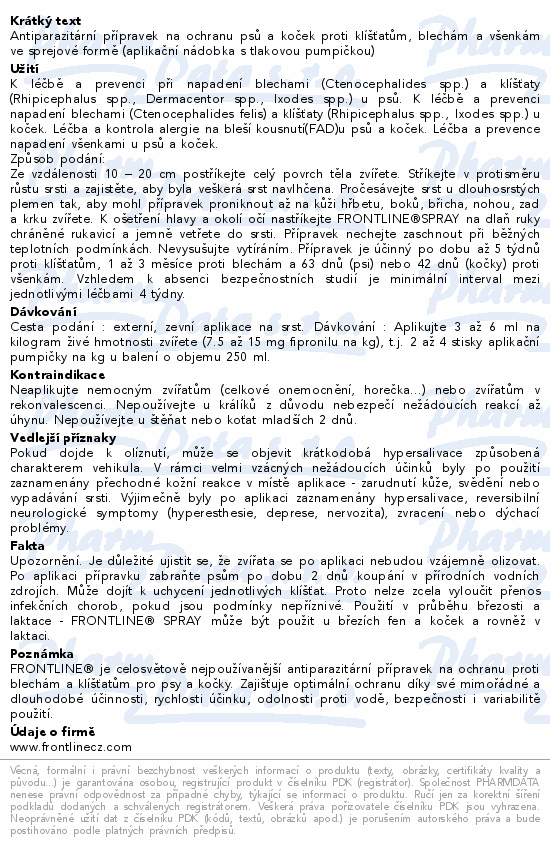 Antiparazitární přípravek na ochranu psů a koček proti klíšťatům, blechám a všenkám ve sprejové formě (aplikační nádobka s tlakovou pumpičkou)