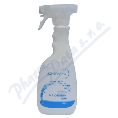Aqvitox-D je superoxidovaný, netoxický a nedráždivý roztok pro ošetření akutních a chronických ran, popálenin a odřenin.