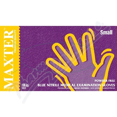Jednorázové nesterilní vyšetřovací nitrilové rukavice bez pudru, pravolevé, AQL 1,5. Balené v krabičce po 100 kusech.