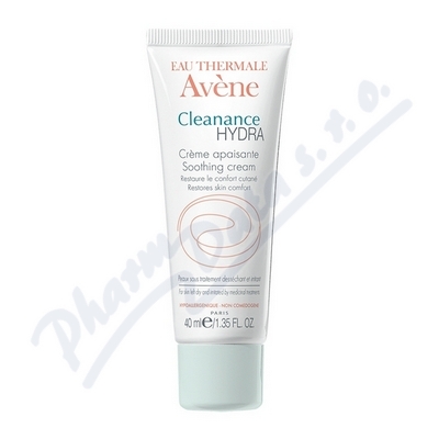Cleanance HYDRA Zklidňující krém obnovuje komfort kůže. Kůže vysušená a podrážděná medikamentózní léčbou akné. Hypoalergenní - nekomedogenní.