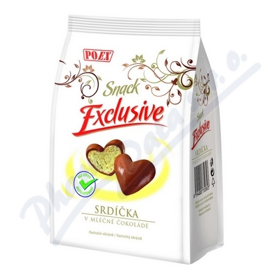 Extrudovaná srdíčka v mléčné čokoládě - bez lepku. Výrobek je složen z extrudovaných srdíček obalených v mléčné čokoládě.