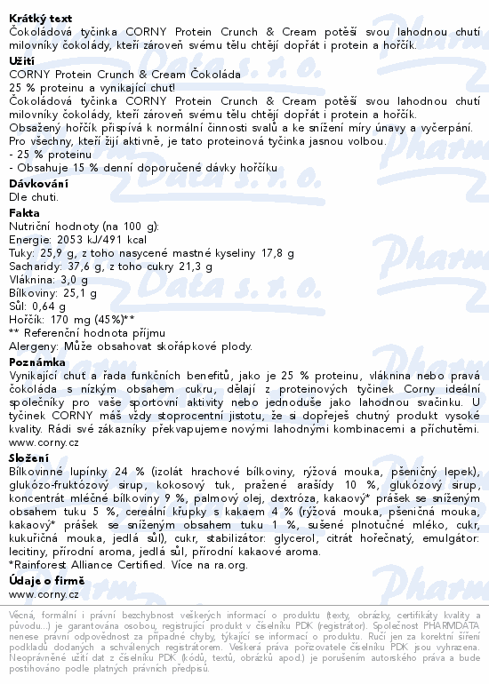 Čokoládová tyčinka CORNY Protein Crunch & Cream potěší svou lahodnou chutí milovníky čokolády, kteří zároveň svému tělu chtějí dopřát i protein a hořčík.