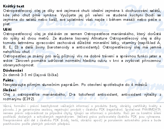 Ostropestřecový olej je díky své zajímavé chuti ideální zejména k dochucování salátů, kde jeho chuť plně vynikne. Využijete jej při vaření ve studené kuchyni (hodí se zejména do salátů nebo kaší), své uplatnění však najde i během masáží nebo péče o pleť.