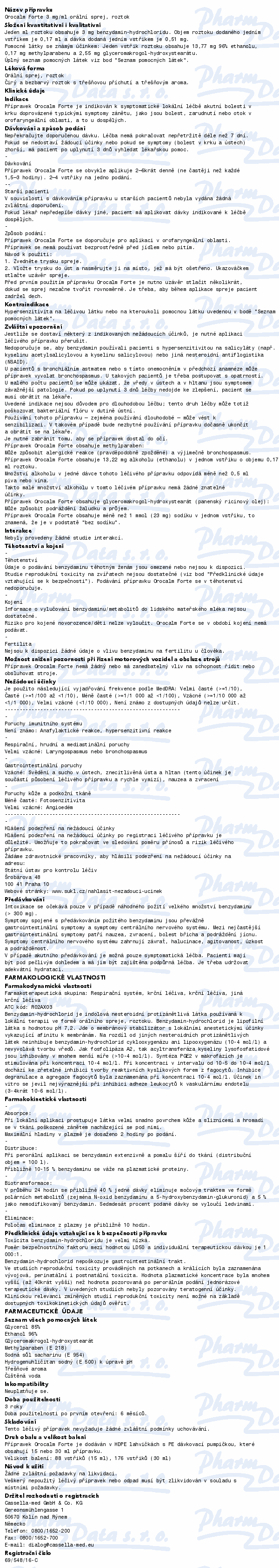 Přípravek Orocalm Forte obsahuje léčivou látku benzydamin-hydrochlorid a patří do skupiny léků zvaných nesteroidní protizánětlivé léčivé přípravky. Působí tak, že zastavuje bolest a odstraňuje otok (zánět). Čtěte pozorně příbalový leták.