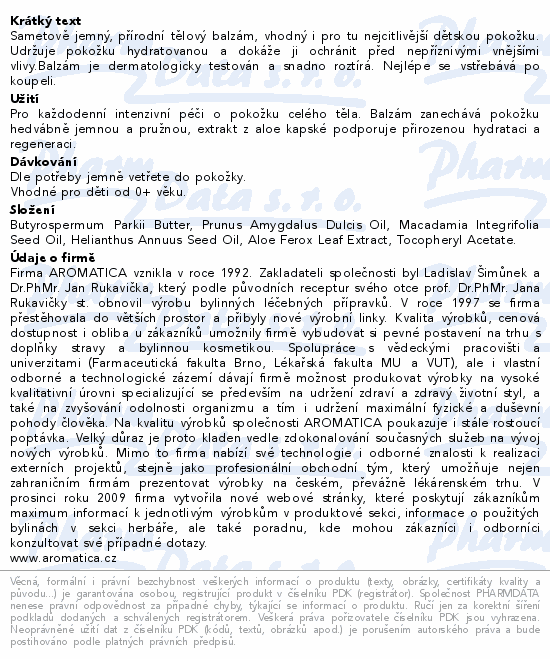 Sametově jemný, přírodní tělový balzám, vhodný i pro tu nejcitlivější dětskou pokožku. Udržuje pokožku hydratovanou a dokáže ji ochránit před nepříznivými vnějšími vlivy.Balzám je dermatologicky testován a snadno roztírá. Nejlépe se vstřebává po koupeli.