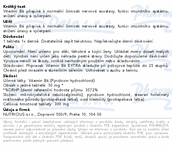 Vitamín B6 přispívá k normální činnosti nervové soustavy, funkci imunitního systému, snížení únavy a vyčerpání.