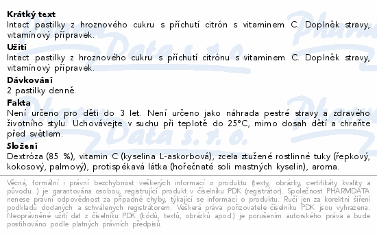 Intact pastilky z hroznového cukru s příchutí citrón s vitaminem C. Doplněk stravy, vitamínový přípravek.