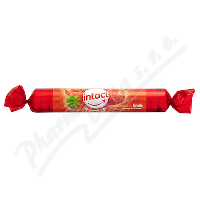 Intact pastilky z hroznového cukru s příchutí jahoda s vitaminem C. Doplněk stravy, vitamínový přípravek.