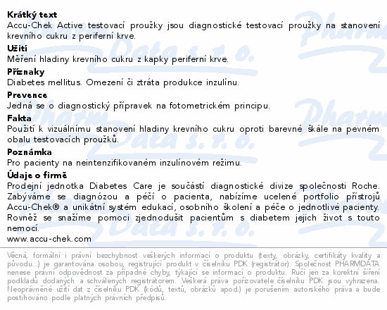 Accu-Chek Active testovací proužky jsou diagnostické testovací proužky na stanovení krevního cukru z periferní krve.