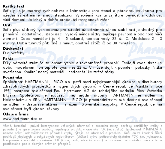 Safix plus je sádrový rychloobvaz s krémovitou konzistencí a pórovitou strukturou pro střední až extrémně silnou stabilizaci. Vylepšená kvalita zajišťuje pevnost a odolnost vůči zlomení. Je lehký a dobře propouští rentgenové záření