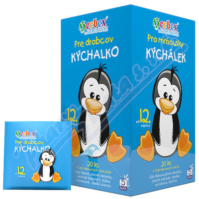 Herbex Kýchálek Pro mrňousky je porcovaný čaj pro děti od 12.měsíce. Tymián, jitrocel a lékořice napomáhají normální funkci dýchacího systému.