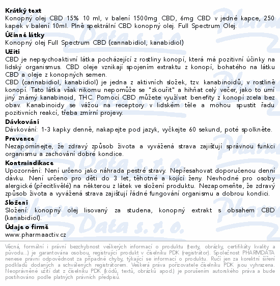 Konopný olej CBD 15% 10 ml, v balení 1500mg CBD, 6mg CBD v jedné kapce, 250 kapek v balení 10ml. Plně spektrální CBD konopný olej. Full Spectrum Olej.