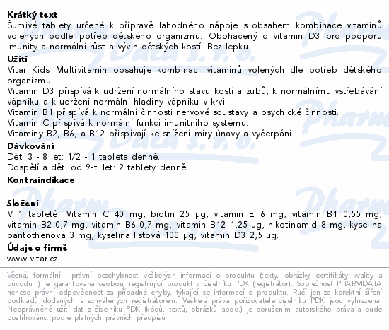 Šumivé tablety určené k přípravě lahodného nápoje s obsahem kombinace vitaminů volených podle potřeb dětského organizmu. Obohacený o vitamin D3 pro podporu imunity a normální růst a vývin dětských kostí. Bez lepku.