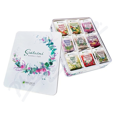 Sváteční kolekce čajů obsahuje 9 druhů čajů s různými příchutěmi - 5 ovocných čajů, 1 bílý čaj, 1 černý čaj, 2 bylinné čaje.