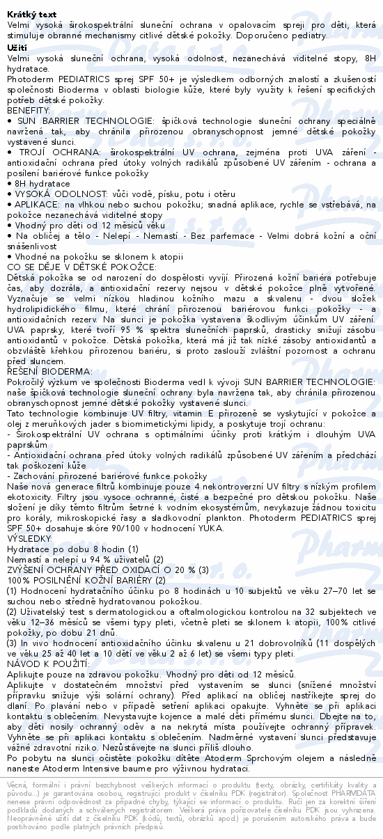 Velmi vysoká širokospektrální sluneční ochrana v opalovacím spreji pro děti, která stimuluje obranné mechanismy citlivé dětské pokožky. Doporučeno pediatry.