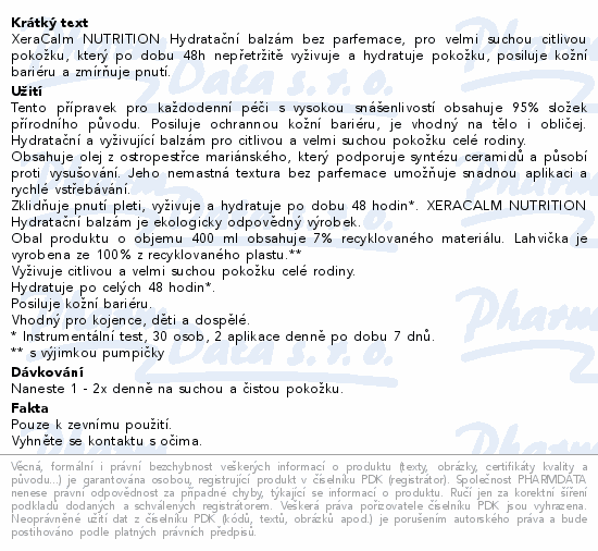XeraCalm NUTRITION Hydratační balzám bez parfemace, pro velmi suchou citlivou pokožku, který po dobu 48h nepřetržitě vyživuje a hydratuje pokožku, posiluje kožní bariéru a zmírňuje pnutí.