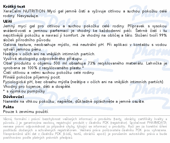 XeraCalm NUTRITION Mycí gel jemně čistí a vyživuje citlivou a suchou pokožku celé rodiny. Nevysušuje.