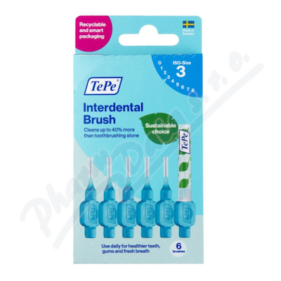 TePe Original mezizubní kartáčky 0,6 mm, modré 6 ks. Drátek je potažený plastem pro maximální ochranu dásní a citlivých zubních krčků. Vysoce odolné vůči zlomení. Plochá rukojeť pro pohodlné a přesné čištění. Baleno v papírové uzavíratelné krabičce.