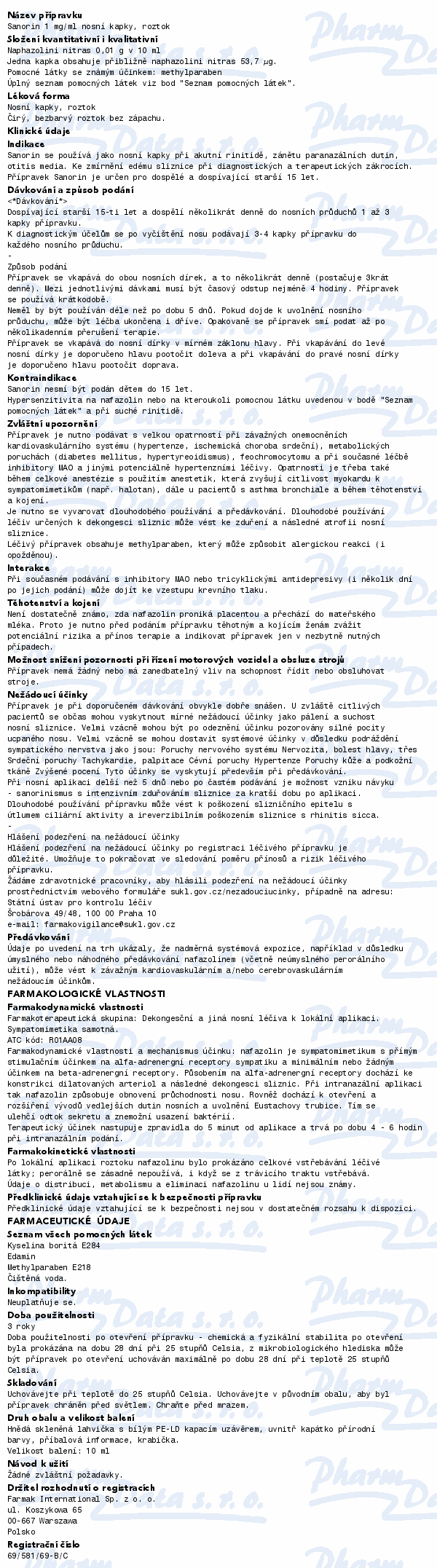 Sanorin se používá jako nosní kapky při akutní rinitidě, zánětu paranazálních dutin, otitis media. Ke zmírnění edému sliznice při diagnostických a terapeutických zákrocích. Čtěte pozorně příbalový leták.