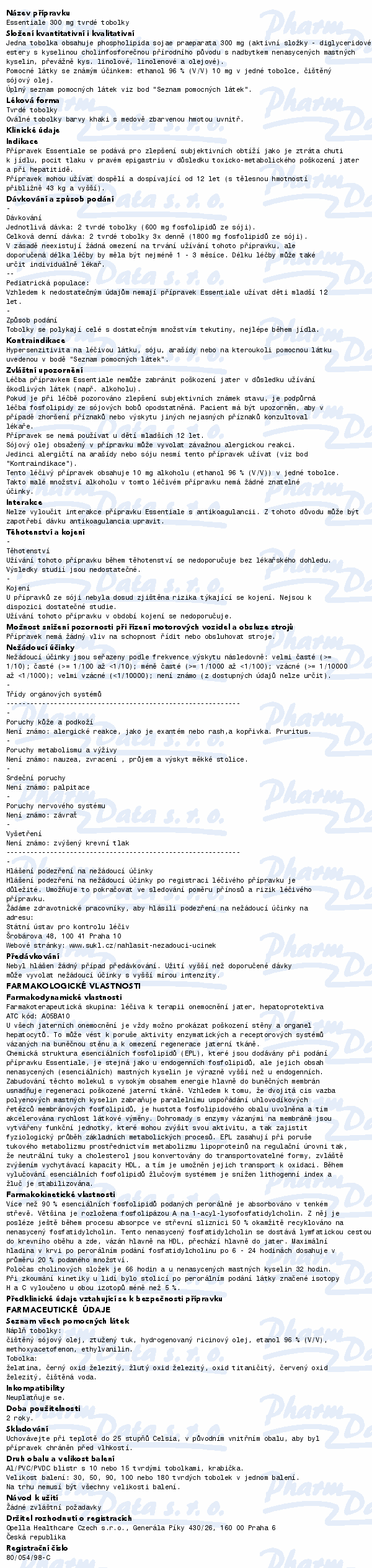 Essentiale se podává pro zlepšení subjektivních obtíží jako je ztráta chuti k jídlu, pocit tlaku v pravém epigastriu v důsledku toxicko-metabolického poškození jater a při hepatitidě. Přípravek mohou užívat dospělí a mladiství od 12 let. Čtěte pozorně příbalový leták.