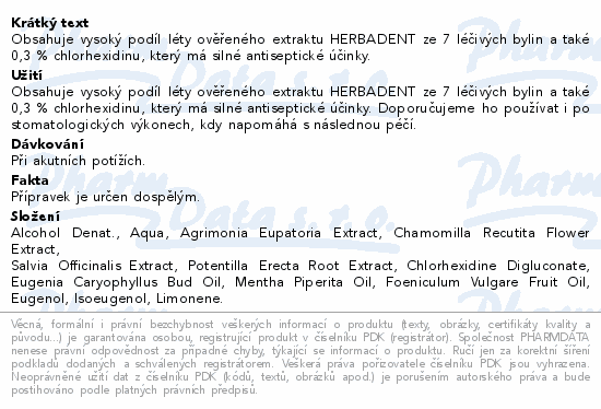 Obsahuje vysoký podíl léty ověřeného extraktu HERBADENT ze 7 léčivých bylin a také 0,3 % chlorhexidinu, který má silné antiseptické účinky.