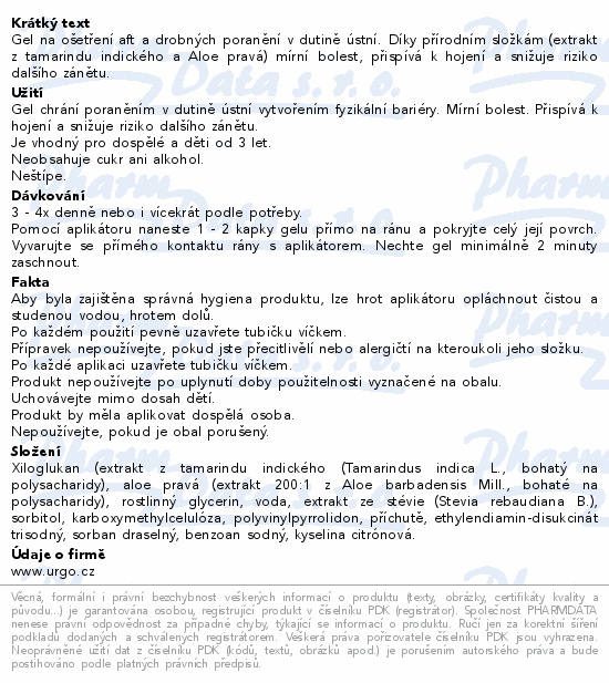 Gel na ošetření aft a drobných poranění v dutině ústní. Díky přírodním složkám (extrakt z tamarindu indického a Aloe pravá) mírní bolest, přispívá k hojení a snižuje riziko dalšího zánětu.