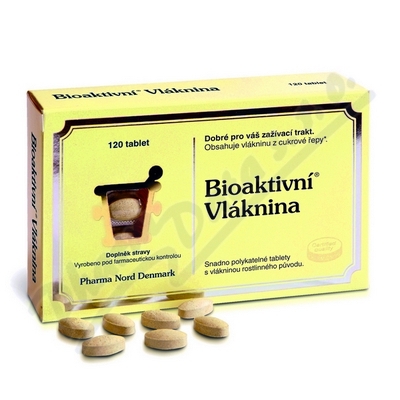 Bioaktivní Vláknina ve formě snadno polykatelných tablet s vlákninou z cukrové řepy. Zvětšuje objem stolice.