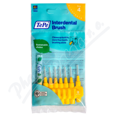 Mezizubní kartáčky TePe mají plastem izolovaný drátek, aby byla zajištěna maximální ochrana dásní a zubů. Speciálně vybraná vlákna zajišťují efektivní čištění. Průměr drátku 0,7 mm, žlutý odstín, 8 ks + krytka v balení, baleno v sáčku.
