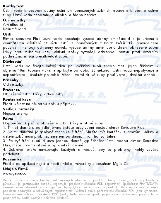 Ústní voda k ošetření dutiny ústní při obnažených zubních krčcích a k péči o citlivé zuby. Ústní voda neobsahuje alkohol a žádná barviva.
