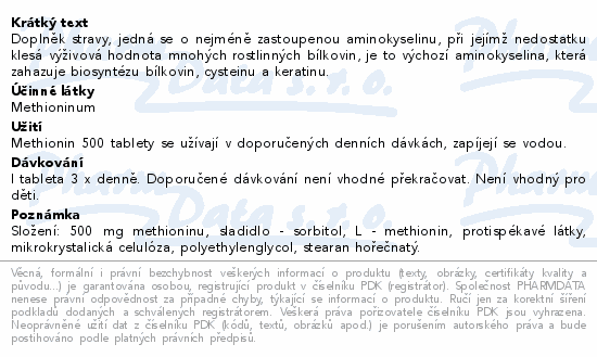 Doplněk stravy, jedná se o nejméně zastoupenou aminokyselinu, při jejímž nedostatku klesá výživová hodnota mnohých rostlinných bílkovin, je to výchozí aminokyselina, která zahazuje biosyntézu bílkovin, cysteinu a keratinu.