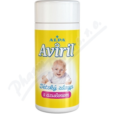 AVIRIL dětský zásyp s azulenem účinně chrání dětskou pokožku, má mírný dezinfekční účinek, obsahuje azulen. Baleno v sypací dóze.