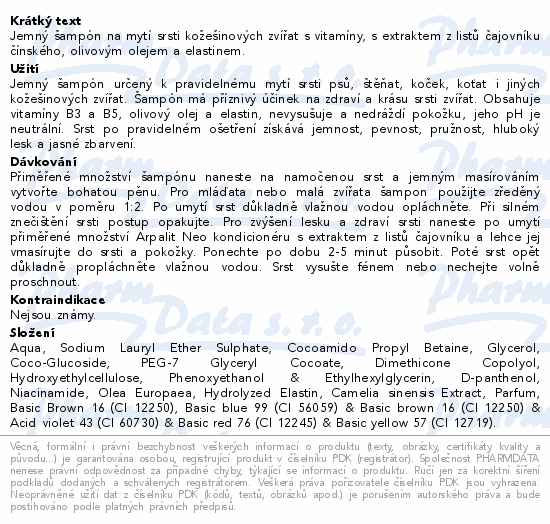Jemný šampón na mytí srsti kožešinových zvířat s vitamíny, s extraktem z listů čajovníku čínského, olivovým olejem a elastinem.
