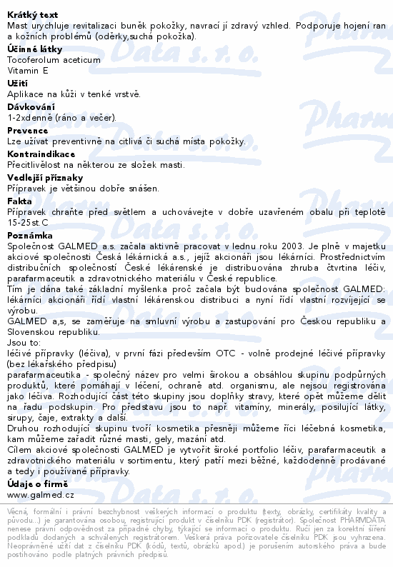 Mast urychluje revitalizaci buněk pokožky, navrací jí zdravý vzhled. Podporuje hojení ran a kožních problémů (oděrky,suchá pokožka).