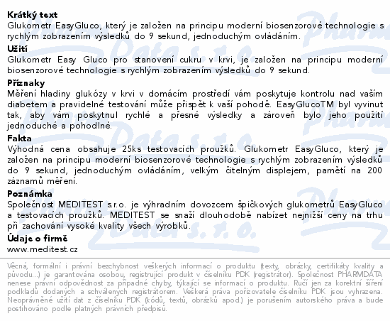 Glukometr EasyGluco 25ks test.proužků+25 lancet