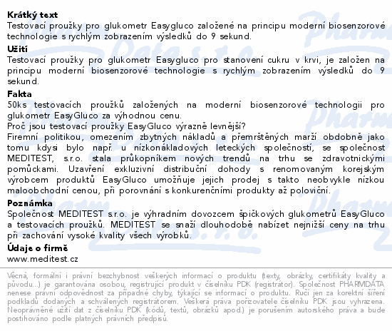 Testovací proužky pro glukometr Easygluco založené na principu moderní biosenzorové technologie s rychlým zobrazením výsledků do 9 sekund.